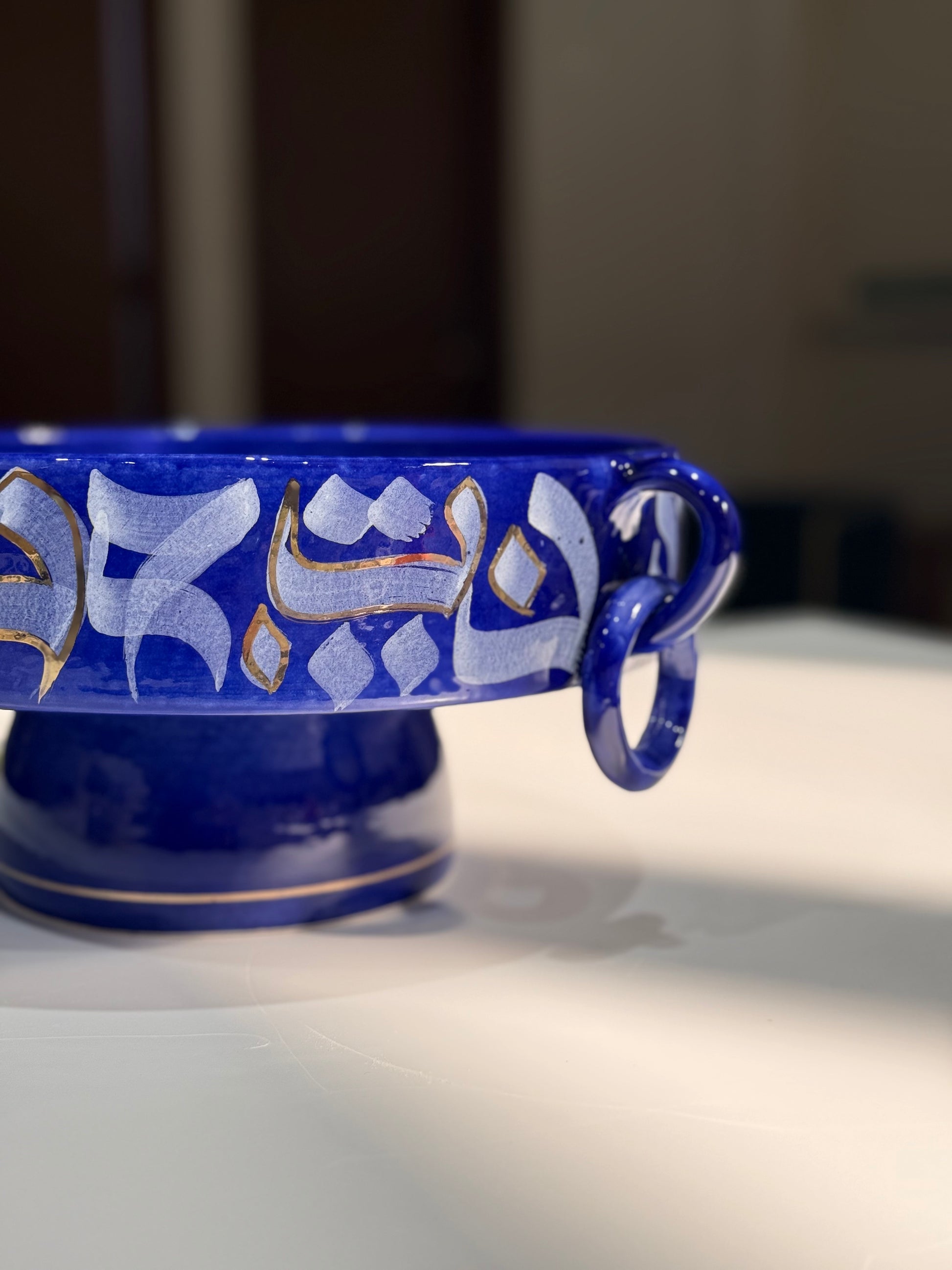 دمج حقيقي بين الفن والتراث، كوب الخط – ذهب عيار 18 هو أكثر من مجرد ديكور—إنه بيان للأناقة. يتميز بتفاصيل ذهب عيار 18 مطبقة يدويًا بعناية، يعرض هذا القطعة الرائعة خطوطًا متدفقة من الخط العربي، يحتفي بالتقاليد بشكل راقٍ ومعاصر. صُمم ليُعجب به، ويضفي لمسة من الرقي على أي مكان، سواء عُرض كمركز جذب أو استُخدم للمناسبات الخاصة.